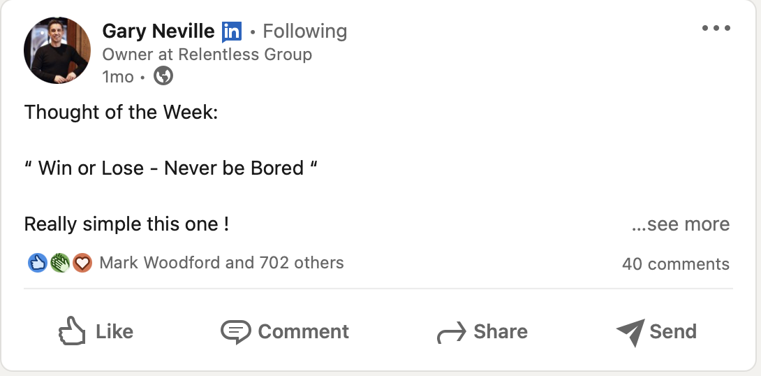 ‘Thought of the week/day/month’ - very simple. Gary Neville does this really well, see below.
