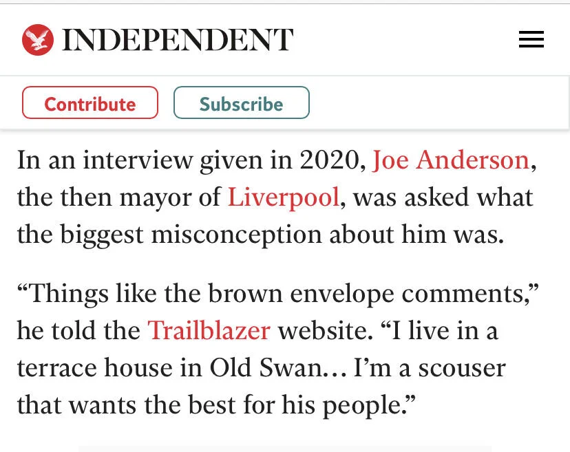 Example - Trailblazer interviewed Joe Anderson before he was later arrested on suspicion of bribery, when The Independent published an article on the issue they referenced Trailblazer’s interview.