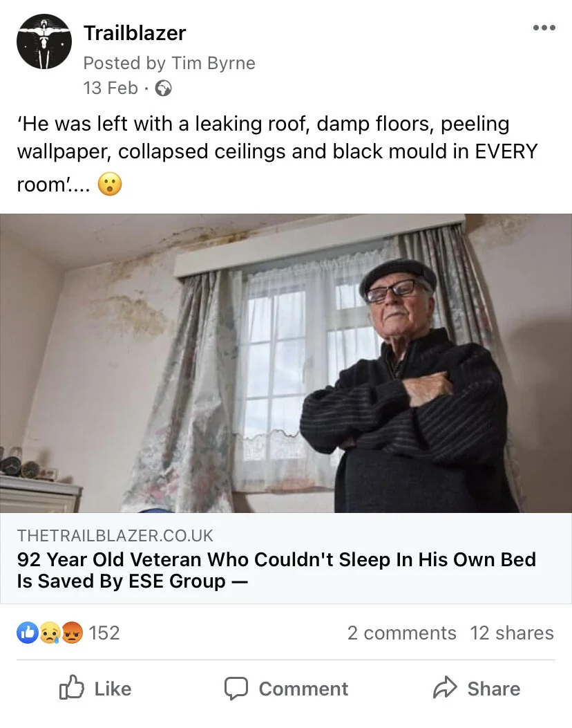 Example: A client of ours is ESE Group, during the peak of the pandemic they helped an elderly gentleman and we ran their story across our social media channels. By strategically engaging with different groups/pages and our own audience we created very positive exposure for them.