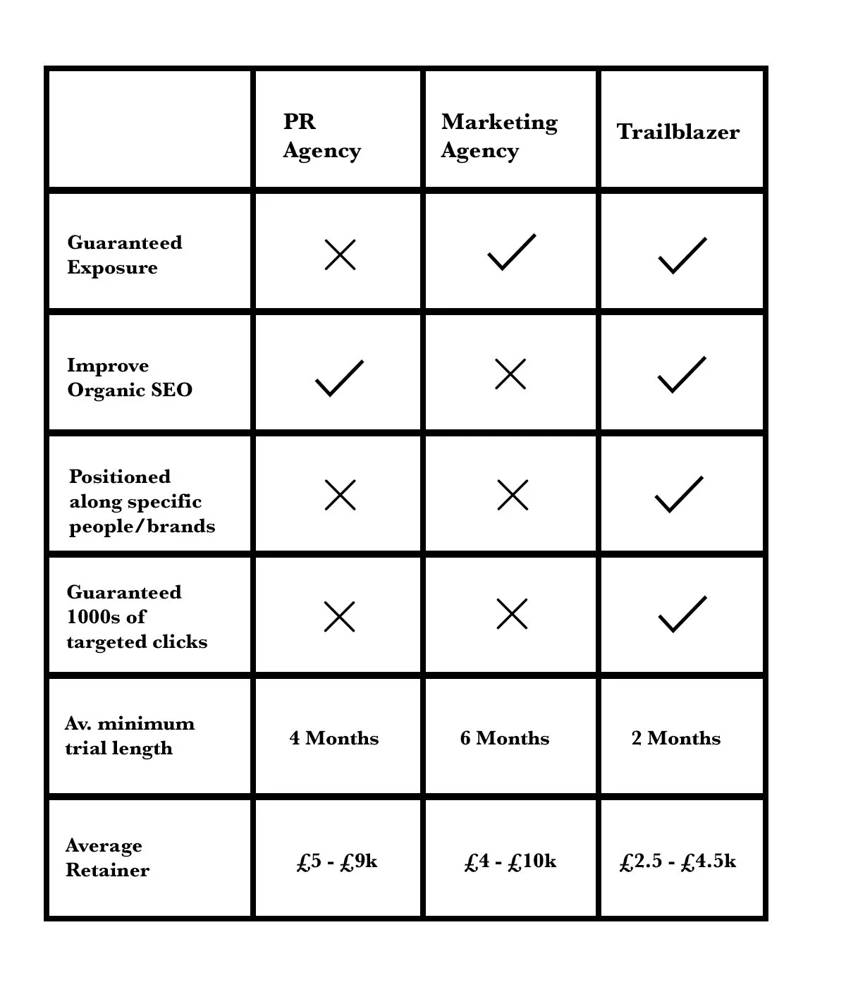 Trailblazer has developed a unique concept that combines both elements, ensuring a maximum return on investment by quantifiable measures. Here’s how it works compared to traditional methods…