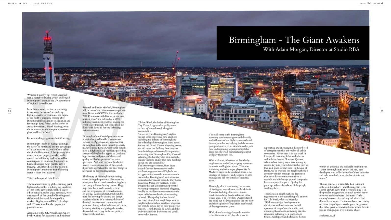 Studio RBA were positioned alongside the head of Birmingham City Council in an article focused on Birmingham’s rise in the property market. The article reached their target audience to generate more business.